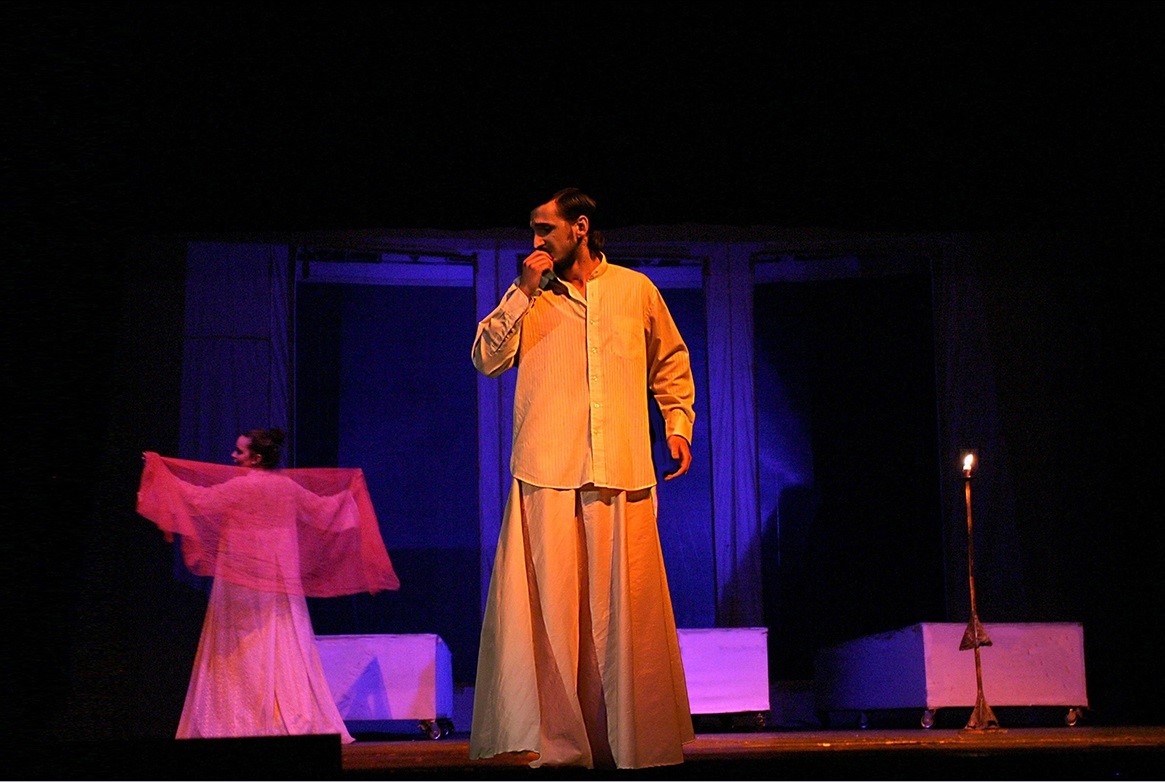A love drama shaped by its interplay of light and shadow, set against a sharp social backdrop. Emotional and spiritual blindness gives rise to deep pain when confronted with a soul surrendered to the “poison” of love. The play unfolds with surgical precision, revealing a soul laid bare vulnerable, surrendered, yet unwaveringly faithful to its own feelings. It cuts through hypocrisy and the illusion of connection, exposing a truth that is both raw and uncompromising. Through the magic of theatre, this truth is not only revealed but lived, tracing the journey of an archetypal figure within a harsh and draining universe. The result is an experience that is at once deeply felt and quietly absurd, enriched by an allegorical layer that makes the work both provocative and thought-provoking. The work transfers from realism to symbolism, containing absurd moments.